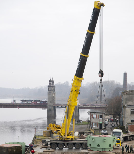 Liebherr LTM 1500 на разгрузке деталей АЭС в Калининградской области
