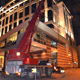 Автокран Liebherr LTM 1050 поднимает автомобиль на крышу отеля Lotte в Москве