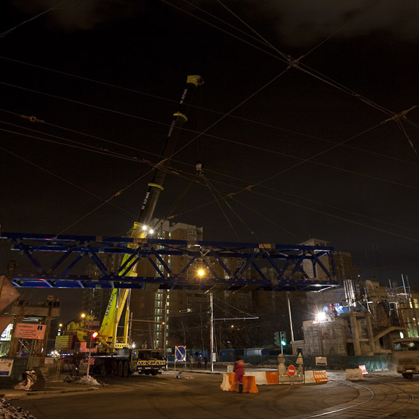 Liebherr LTM 1500 на монтаже пешеходного моста в Москве