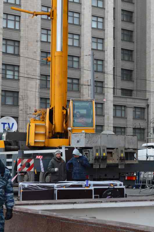 Liebherr LTM 1050 поднимает телекамеры на митинге